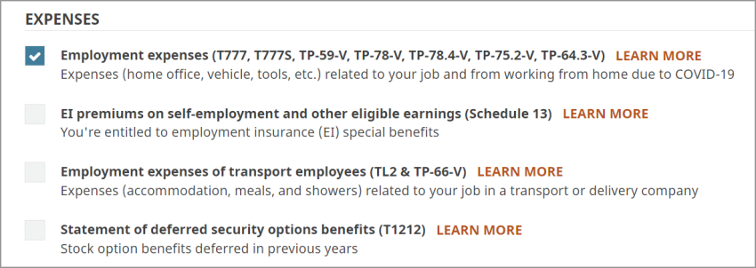 Visit the Statement of employment expenses (T777 and TP-59-V) help article to learn more.