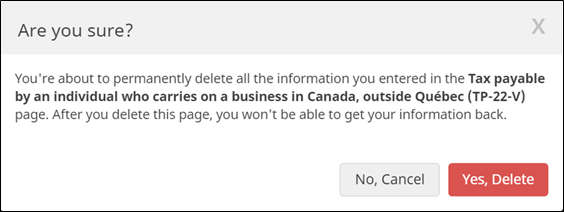 If you entered information into the form/page,the following warning message appears. When you see this message, click Yes, Delete.