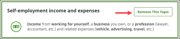 Before you can remove a topic that you’ve added to your return, you’ll need to remove any forms or pages you’ve filled out under that topic (see steps above). Then, follow these steps: