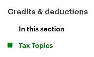 Under the Credits & deductions tab, click Tax Topics. You’ll find yourself here: