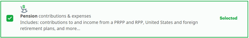 - Under the heading, PRPP and RPP, select the checkbox labelled Registered pension plan receipts, then click Continue.