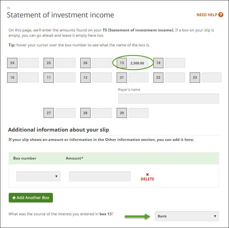 Generally speaking, a bank or financial institution will only issue you a T5 or RL-3 slip (if applicable) your investment income exceeds $50. If you didn’t receive a T5 or RL-3 slip, or if the amount you earned was less than $50, you can report the amounts you earned by completing Statement of investment income, carrying charges, and interest expenses page in the software.