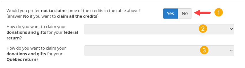 • If you and your spouse have donations for the year, you can combine the donation amounts and claim them all on one partner’s return to get a higher tax credit. Generally, it is more beneficial for the higher income spouse to claim all donations.