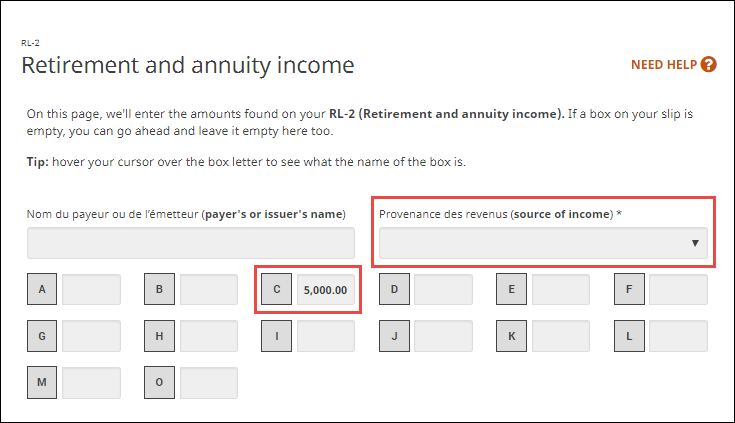 Note: If your RL-2 slip has an amount in Box C you’ll need to indicate the source of this income .