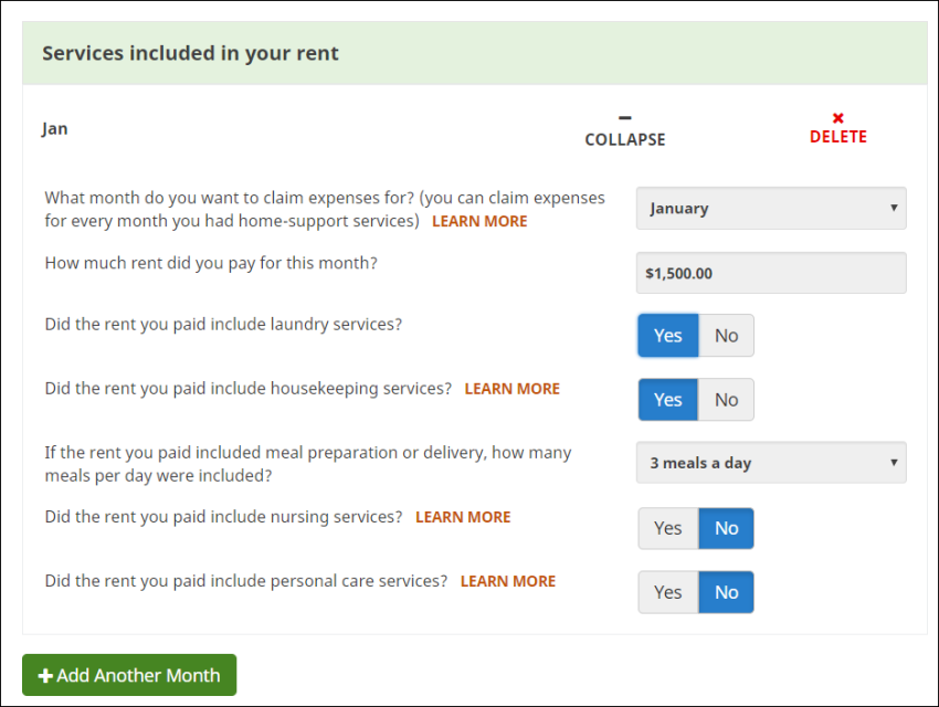 If you received these services as part of your rent throughout the year, simply click the +Add Another Month button and repeat the entry for the months February to December.