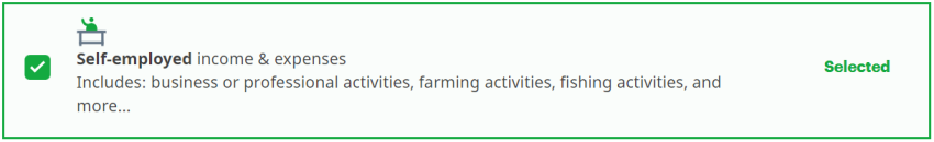 - Under the BUSINESS AND SELF-EMPLOYMENT INCOME heading, select the checkbox labelled Statement of business or professional activities (T2125), and click Continue.