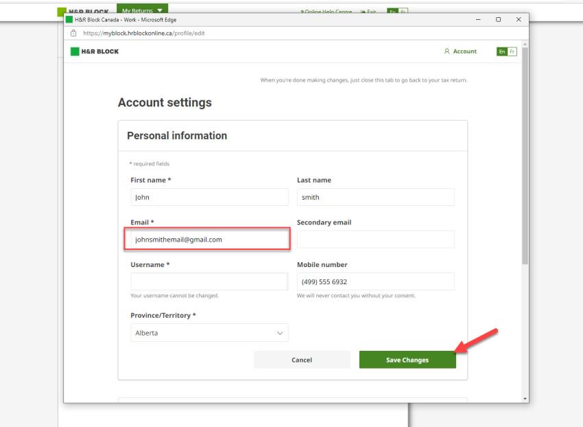 If you need to change the email address you use to sign into your H&R Block account, you can do so in your Account settings.