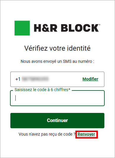 | Renvoyer le code par courriel | Renvoyer le code par SMS |