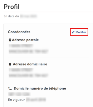 Cliquez sur le bouton pour mettre à jour votre adresse postale, l'adresse de votre domicile et votre numéro de téléphone.