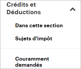 - Sur le menu de navigation gauche, cliquez sur l’onglet Crédits et déductions, puis sur la rubrique Couramment demandés.
