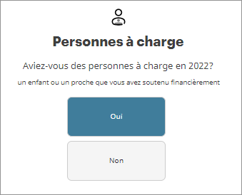 Sur la page (que vous trouverez en cliquant sur Débuter, puis sur dans le menu de navigation gauche), sélectionnez Oui en réponse à la question : Avez-vous des personnes à charge?