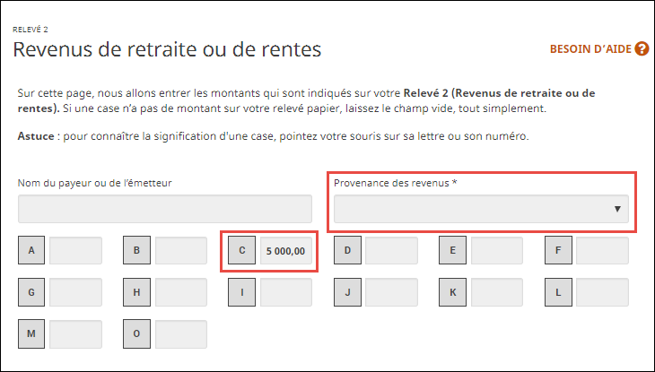 Remarque : si votre relevé 2 indique un montant à la case C, vous devez indiquer la source de ce revenu.