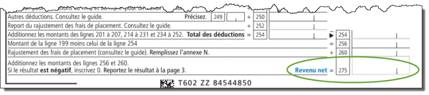 *Vous trouverez la ligne 275 de votre déclaration du Québec au bas de la page 2 de votre formulaire TP-1 :