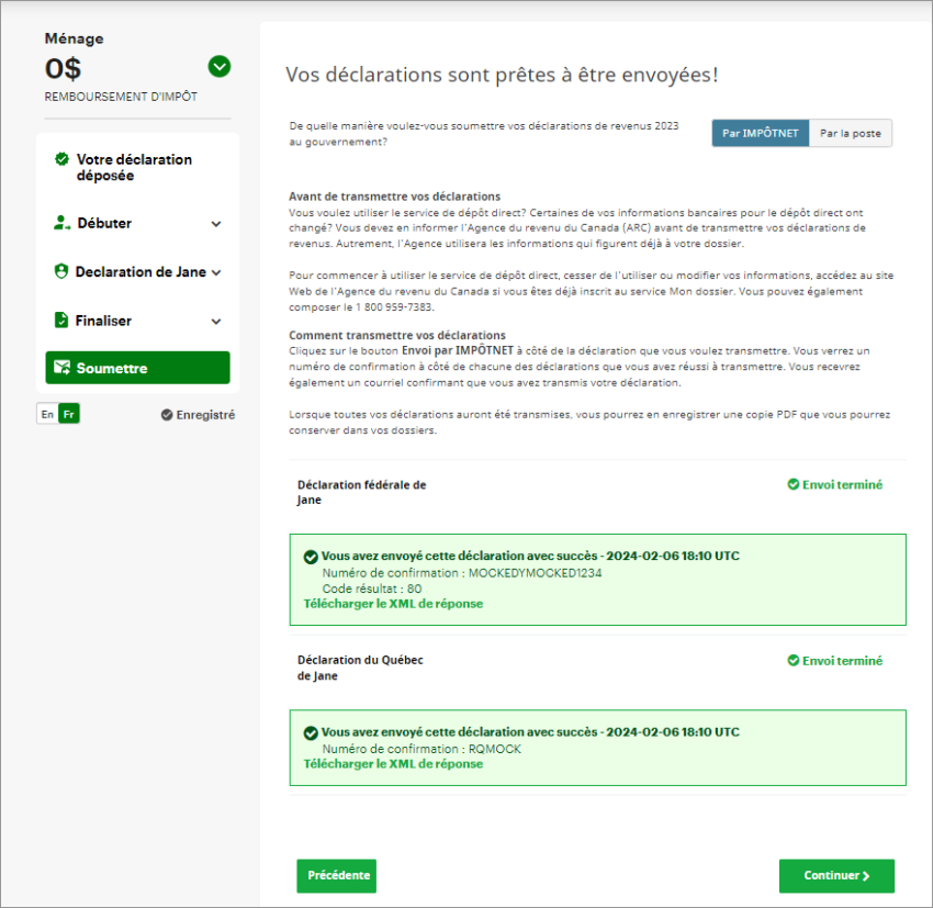 Après avoir choisi ImpôtNet sur la page Soumettre, cliquez sur Continuer.